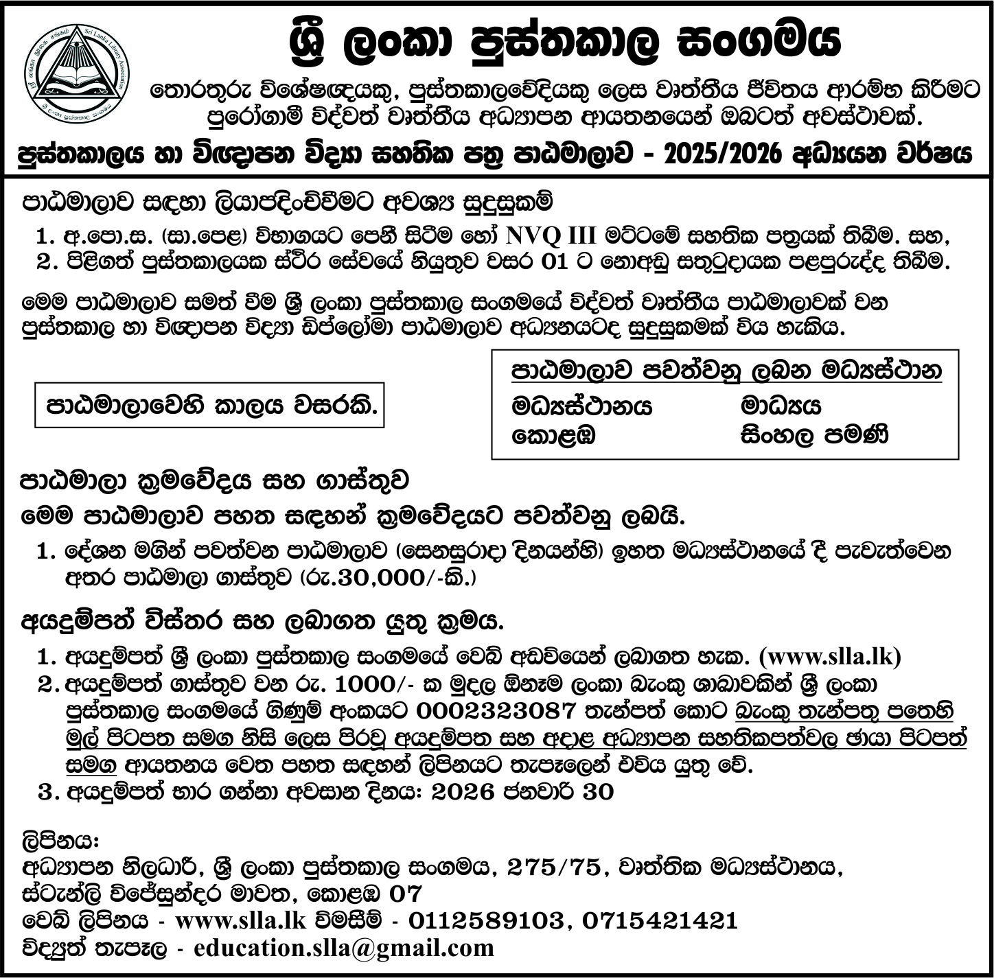 Certificate course Application – 2026 (Sinhala)